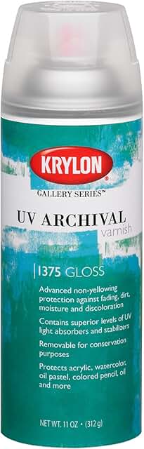 Usually, there’s no need to use a spray to seal watercolor paintings, especially when the paper is mounted on a frame and protected behind glass. However, if you’re working with a watercolor board and prefer not to use glass, sealing your artwork with a spray can be a great option. Consider using the Krylon K01375000 Gallery Series UV Archival Varnish Aerosol Spray in gloss finish—it’s an 11-ounce can that provides excellent protection and enhances the vibrancy of your watercolor masterpiece.